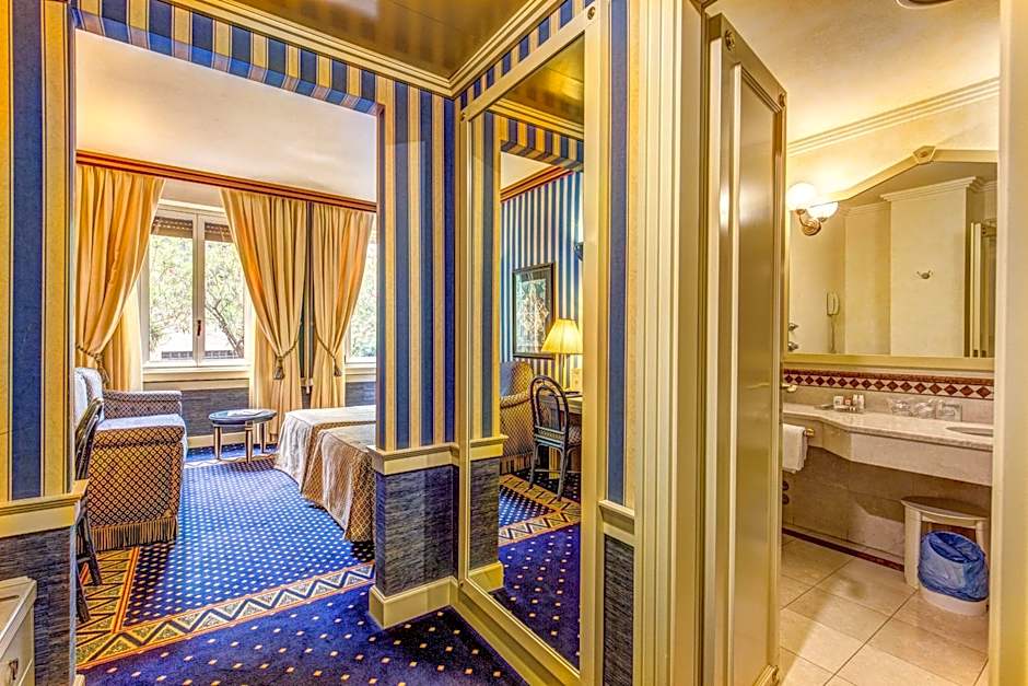 Soundproofed room with satellite TV, air conditioning and a marble private bathroom with a telephone and radio.